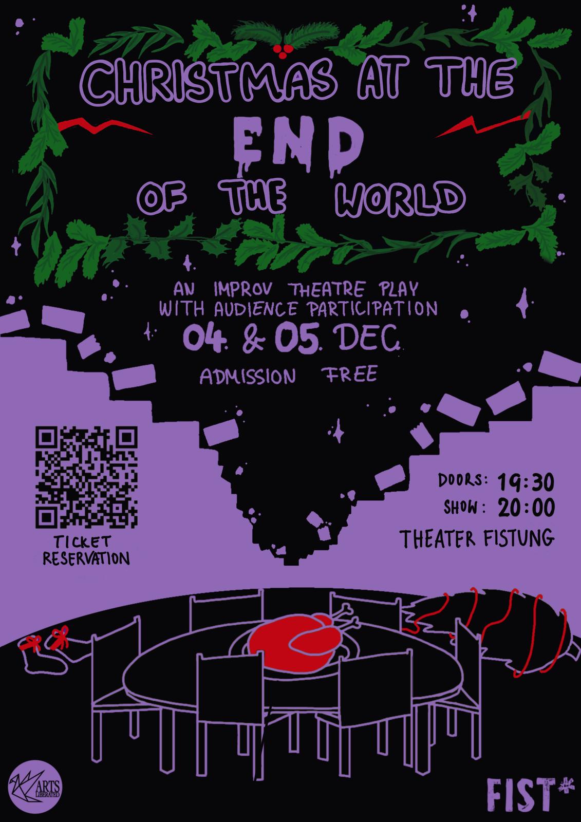 This December, dive into the Arts Lib Improv Theatre Extravaganza “Christmas at the End of the World”. There will be audience participation galore so prepare to exercise your creative muscles! For one special evening, we will join the Noël family for a nice, calm family dinner…the last one before the comet hits.